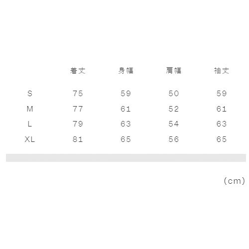 実寸サイズ(cm)S:着丈75、身幅59、肩幅50、袖丈59