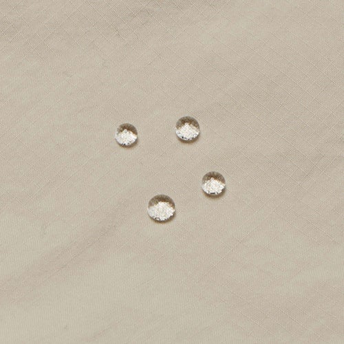 経糸にスパンナイロン糸、緯糸にフィラメントを使用したリップストップ生地は、光沢を抑えたマットな生地感が特徴で、天然素材のようなナチュラルな風合い。