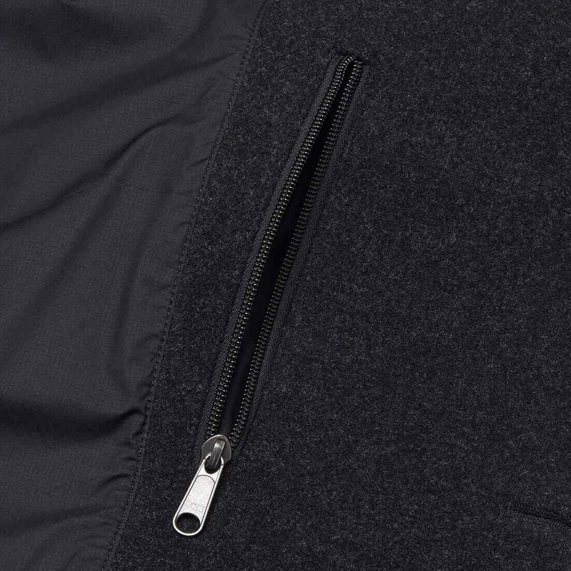 裁断屑や回収した衣料などを一部、原料としたアップサイクルウールと、軽量なポリプロピレンを混紡した独自開発のメルトン生地は、ウール特有の保温性や風合い、しっかりした肉感をもちつつ重さを軽減。