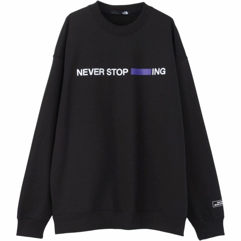 スウェットクルーの左胸に、メッセージ性の高いグラフィックを刺繍で配置しました。