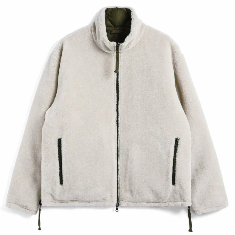 表側にダウン、裏側にボアを採用したリバーシブル仕様のミリタリージャケットです。