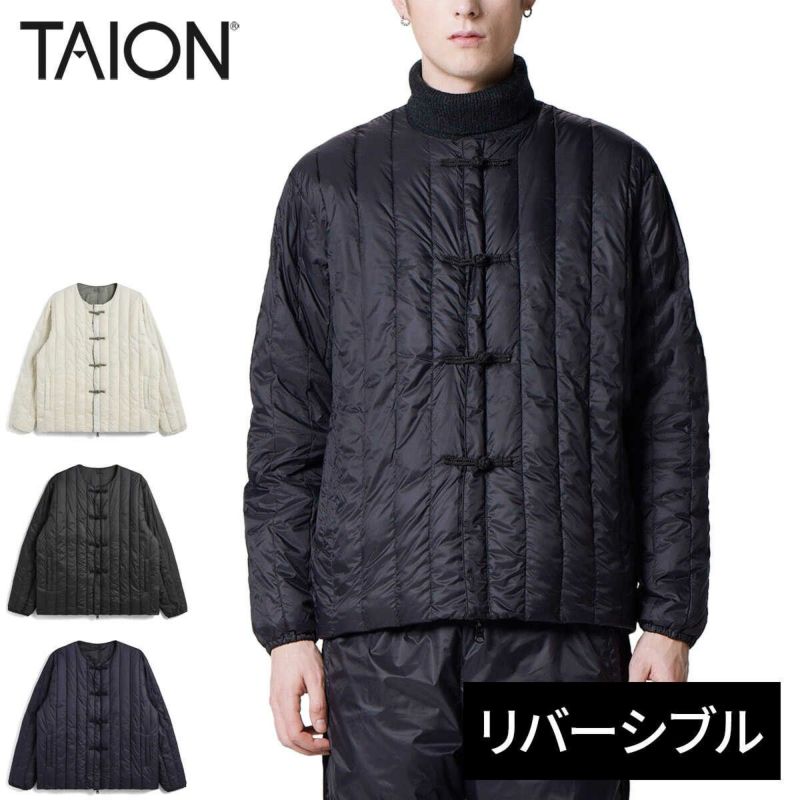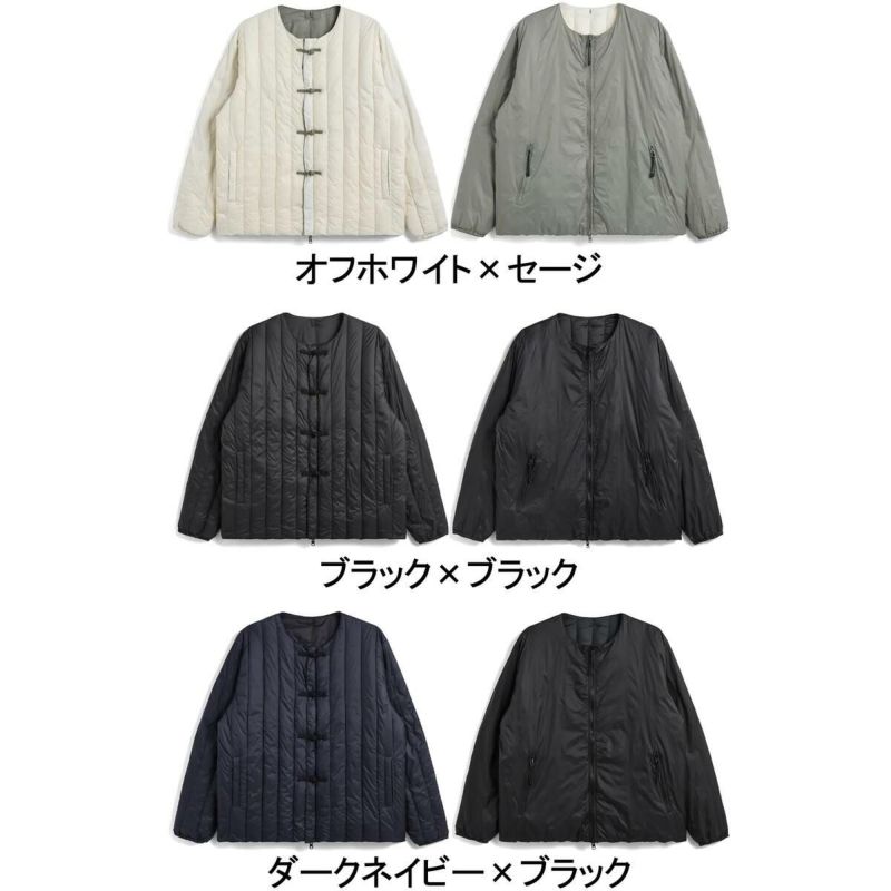 表側は縦キルトでチャイナボタン仕様、裏面はベーシックなジップタイプ仕様を配した、リバーシブルで着用できる商品です同シリーズのダウンマフラー(TAION-AM01JS)もお勧めです。