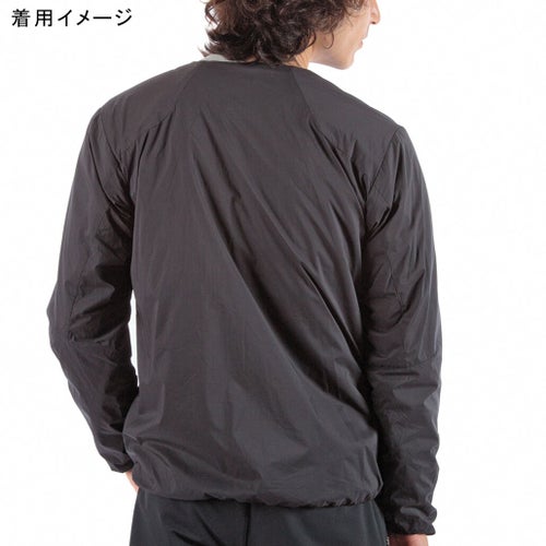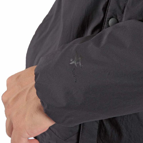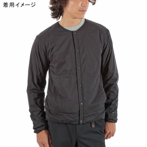 通気性コーティングを施した薄手のストレッチタフタの表地に、中綿と裏地を一体化した高機能トリコット生地「Octa(R)cpcp(R)」をライニングした、ノーカラーデザインのウィンドシェルジャケット。