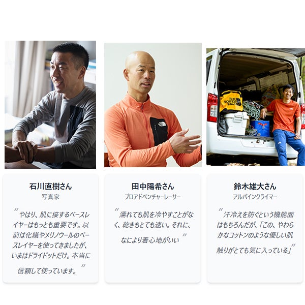 行動時間や運動量が多い遠征、気温や天候変化が激しい高所での着用まで想定して開発した、女性用のテクニカルアンダーウエアです。