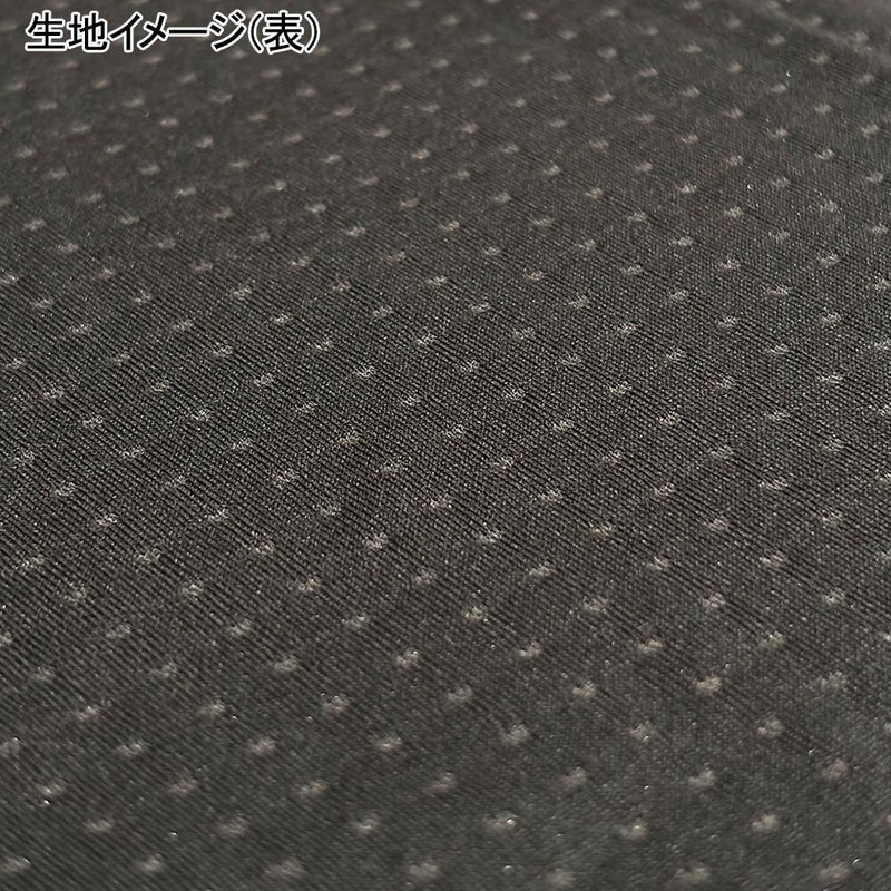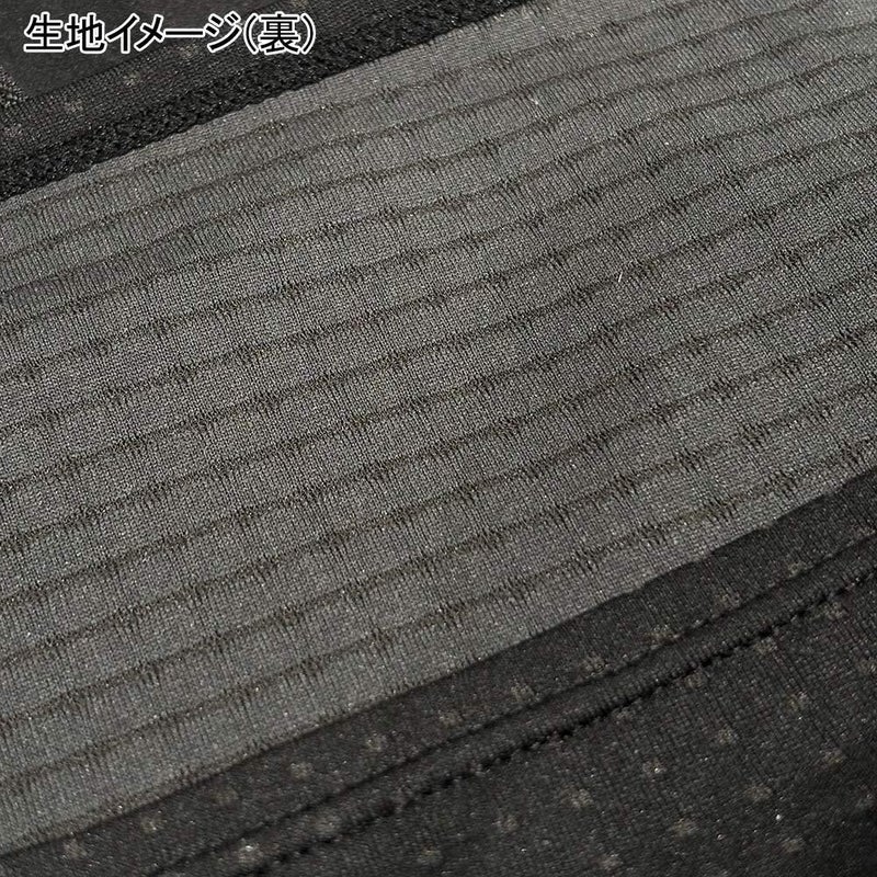 生地は、肌面にはっ水加工を施したドライ層を用い、表面は汗を素早く拡散し乾燥させる吸水層で構成したダブルニット構造。