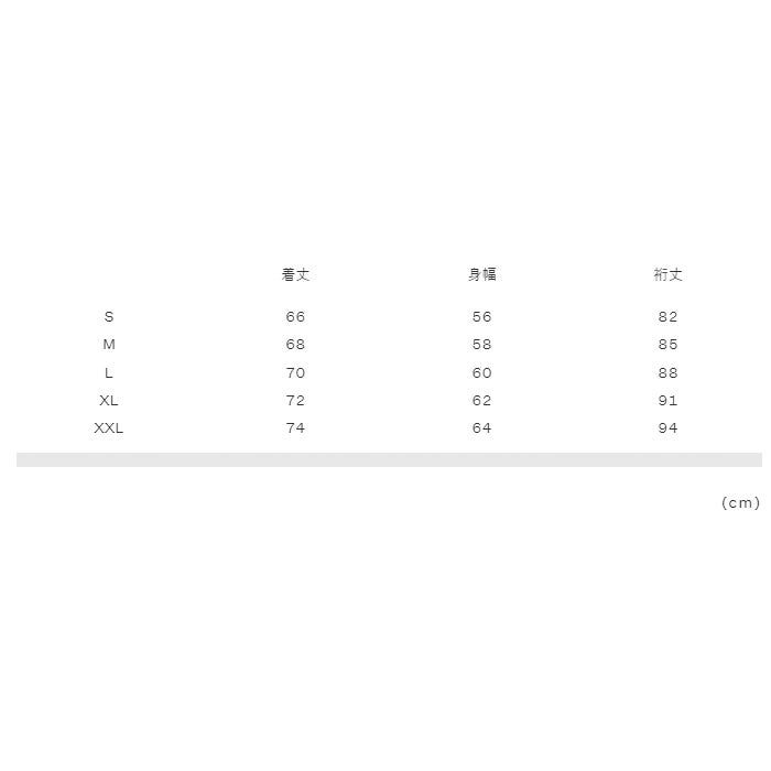 実寸サイズ(cm)S:着丈66、身幅56、裄丈82