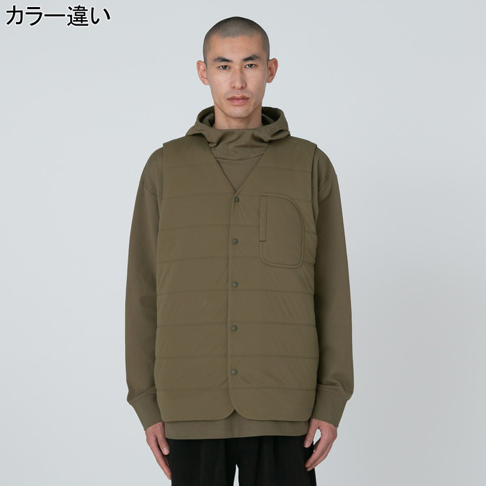 着脱しやすいドットボタン仕様の前開きを採用したベスト。
