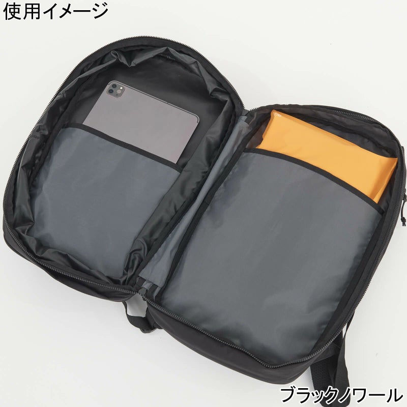 コンプレッションジッパーの開閉によって容量を拡張可能で、日々の通勤用から短期の出張までこれ1つでカバーすることができます。