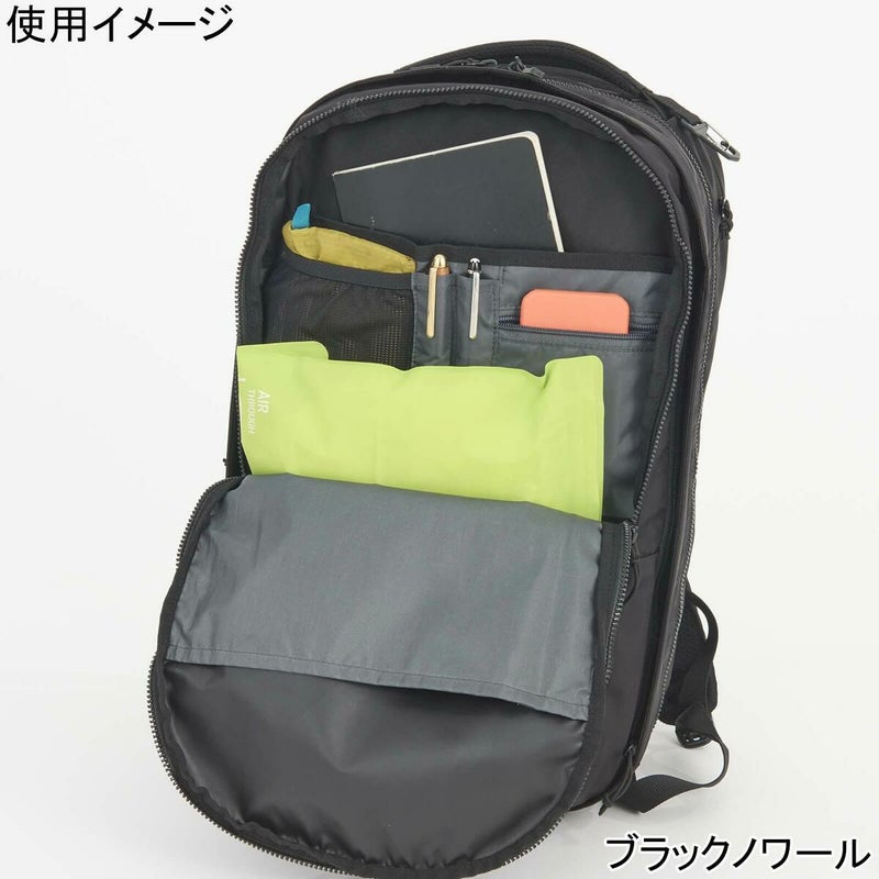 メインコンパートメントはスーツケースのように大きく開き、ノートPC用スリーブや、フロントポケットに装備されたガジェット用のオーガナイザー等によってパッキングもスマート。