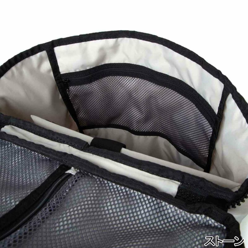 ・メイン収納の開口部を広めに設計し、両サイドに大型ポケットを配備。