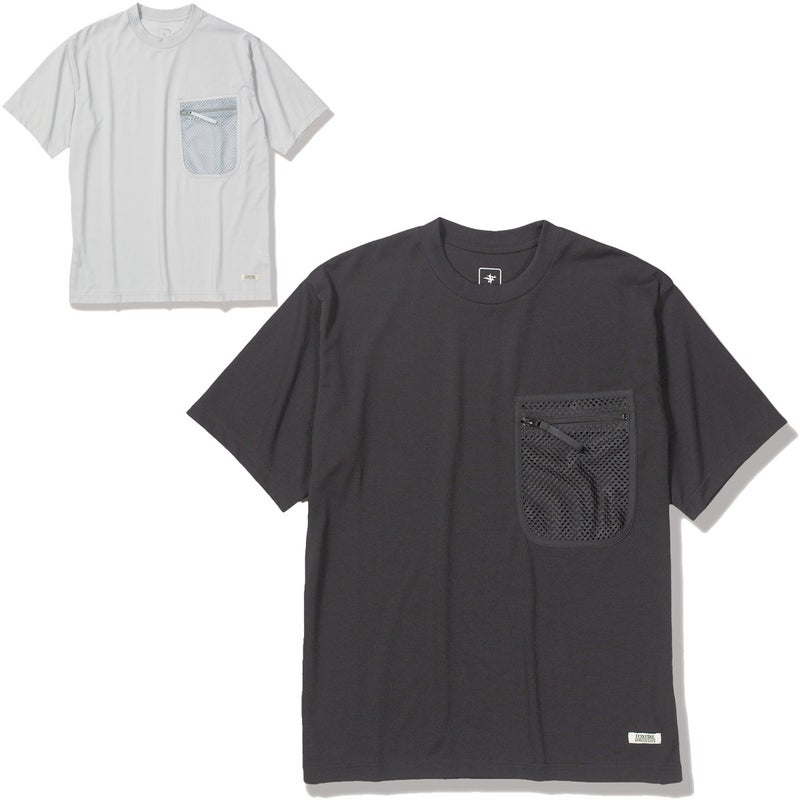 シンプルながら一着で着こなせるルーズシルエットと、左胸に配された大型のファスナー付きメッシュポケットがフィールド仕様をアピール。
