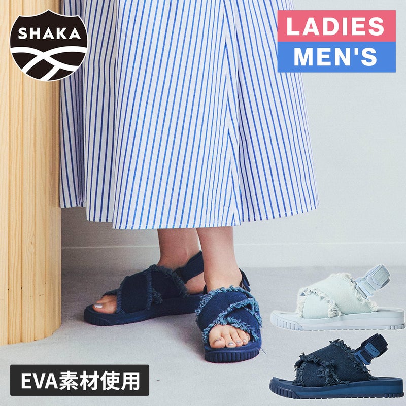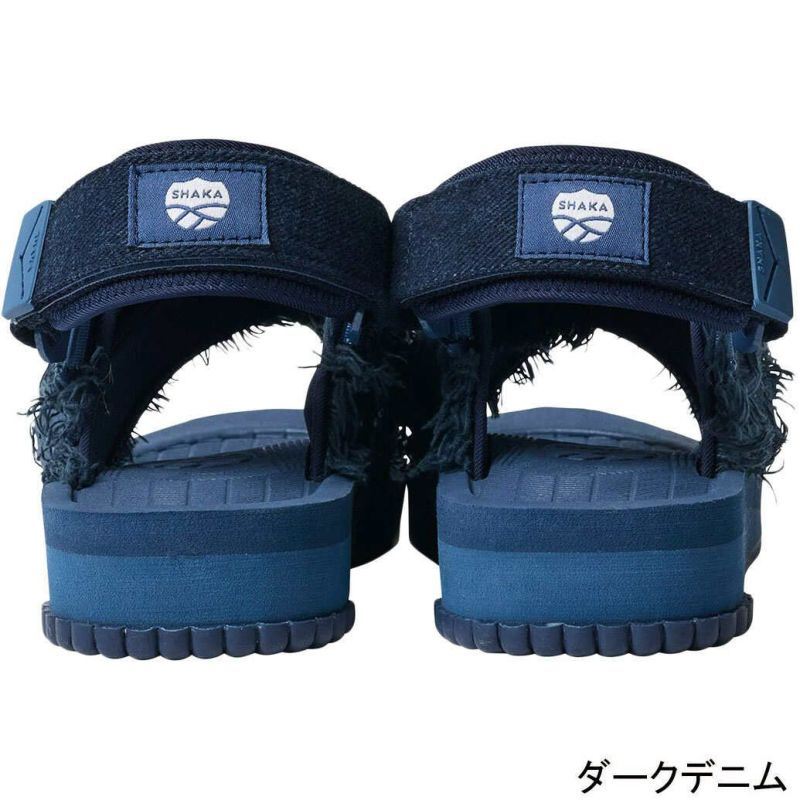 SHAKA(シャカ)サンダルの快適さはそのままに、クラッシュデニム素材を採用することで、モード感とボヘミアンテイストを融合したデザインが魅力的なサンダルにアップデート。