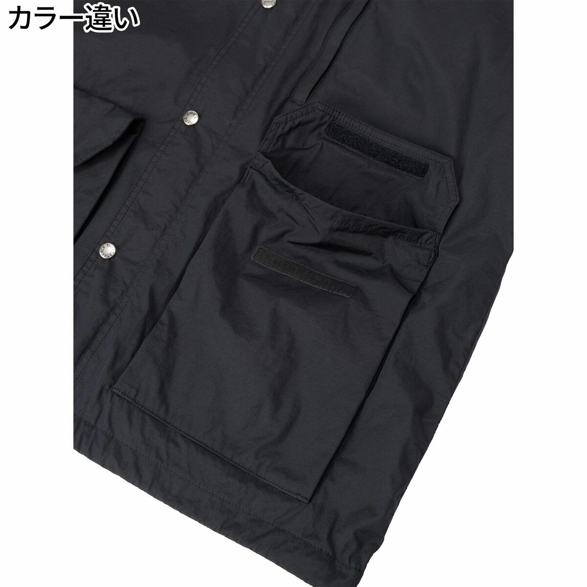 ポケットは左右サイドにマチ付きのフラップポケット、左胸にファスナーポケットのシンプルなデザイン。