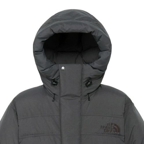 ダウンをたっぷりと封入したフードは頭部をしっかり覆うことができる大きめの設計で、ドローコードで調節が可能です。
