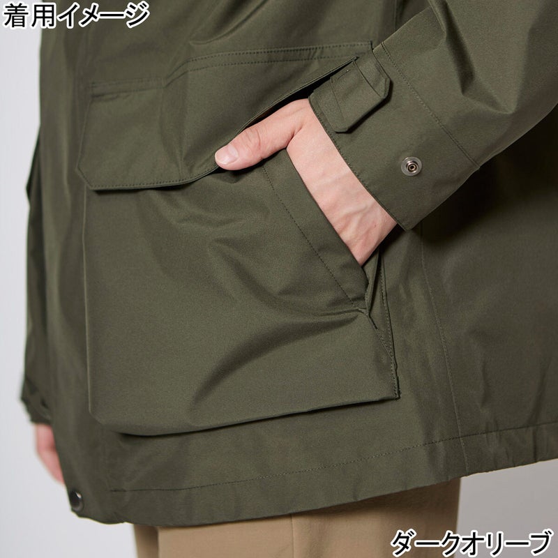 フードは取り外し式で、アウトドアからタウンユースまでさまざまなシーンで活躍し、スーツの上にハーフコートとしても着用可能です。