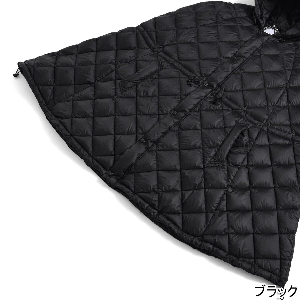 前開き仕様で着脱がしやすく、アウターやリュックの上からもさっと羽織れる、ゆとりあるシルエットのダウンケープです。