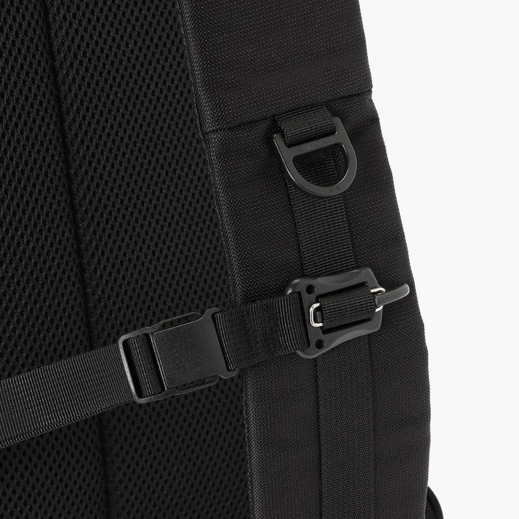 ・自転車移動を想定し、3点止め仕様のショルダーストラップを採用。