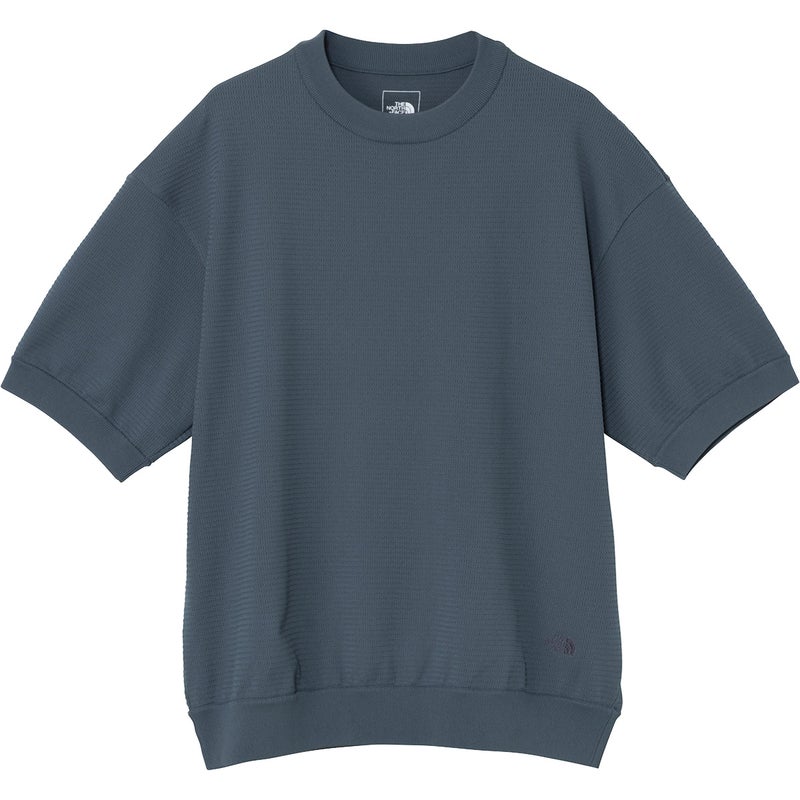 酷暑の気候に活躍する、通気性と遮熱性、UVカット機能を備えた、リップル柄の半袖ニットソー。