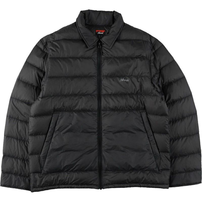 軽量素材の透け感を生かし、羽毛の表情をデザインとして取り込んだシャツ型ダウンブルゾン。
