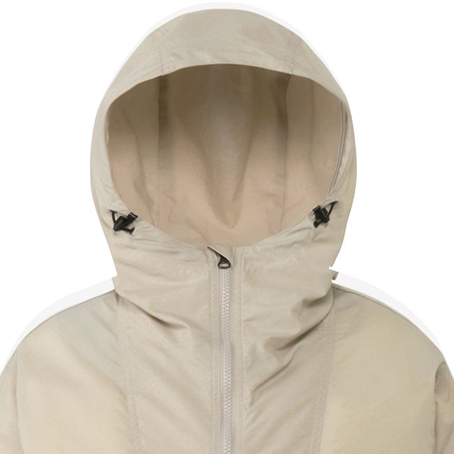外出先での悪天候に対応できる、はっ水加工を施したアノラックタイプの軽量シェルジャケット。