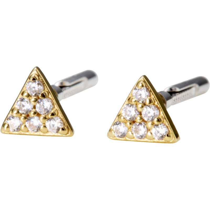 小さなトライアングルにストーンを丁寧に敷き詰めた、上品でミニマルなピアス。