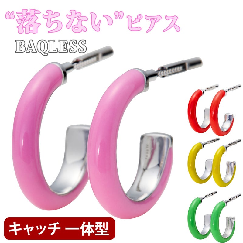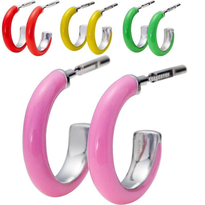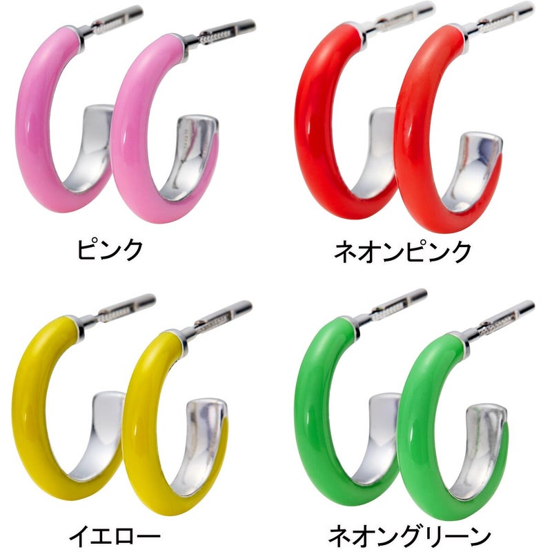 鮮やかなNeon Pinkのエナメルをまとったフープピアス。