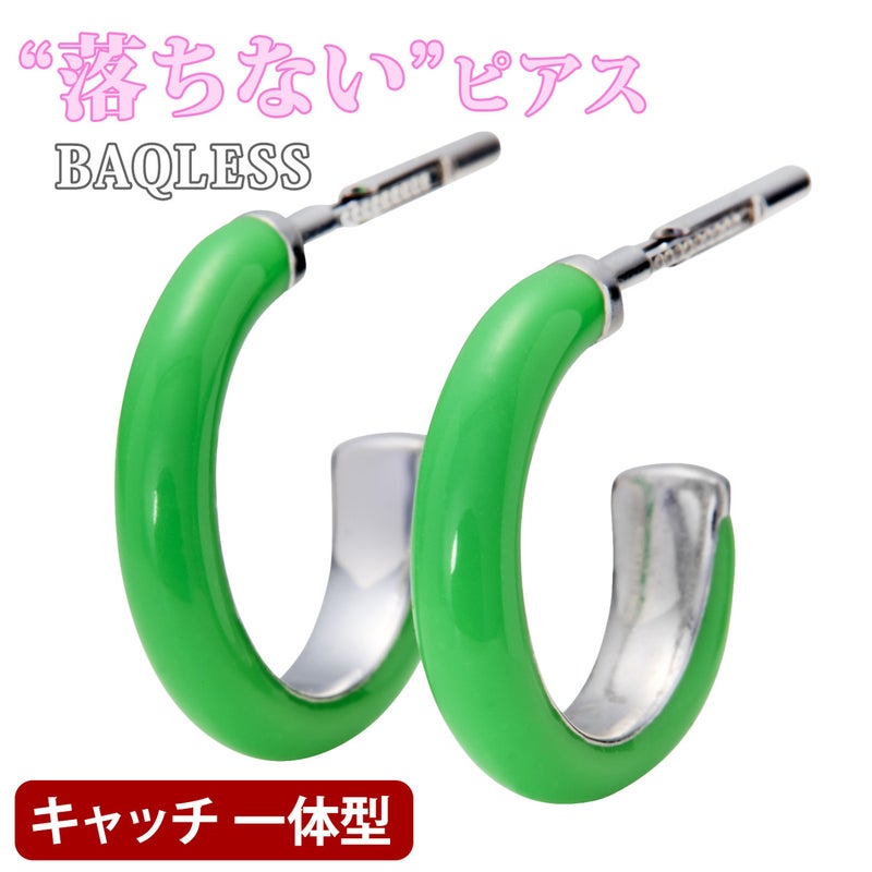 鮮やかなグリーンのエナメルをまとったフープピアス。
