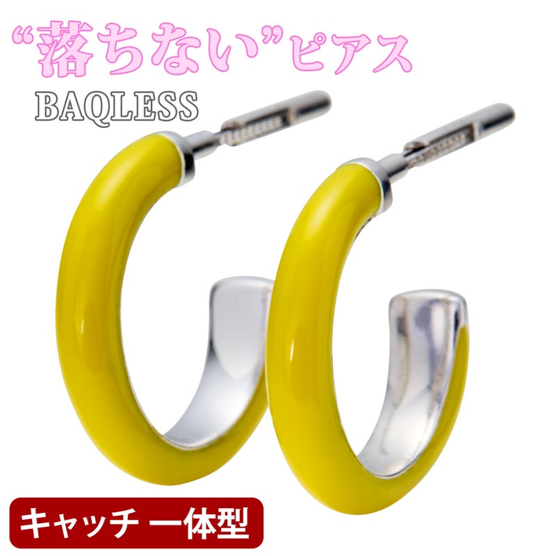 落ち着いたイエローのエナメルが目を引くフープピアス。