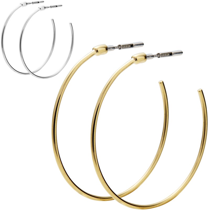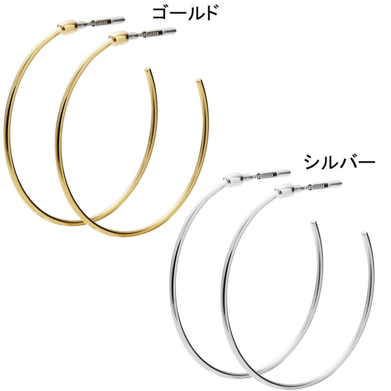 シンプルなラインながら直径の大きさが耳元のアクセントとなり、スタイリング全体を引き締めます。