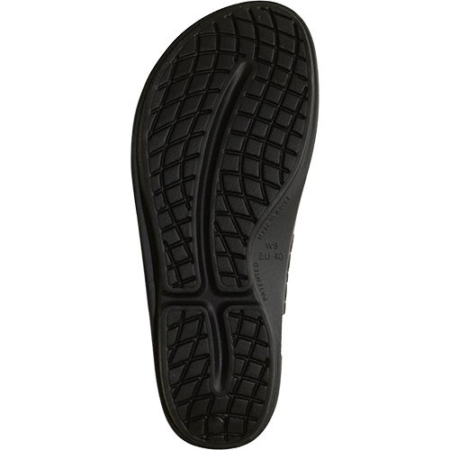 OOFOS(R) 製品に使われている特殊素材 OOfoam は、前進力を生む事を目的とした一般的な EVA 素材のミッドソールと異なり、衝撃の反発を 37% 抑えることができ着地による足裏への衝撃を軽減することができます。