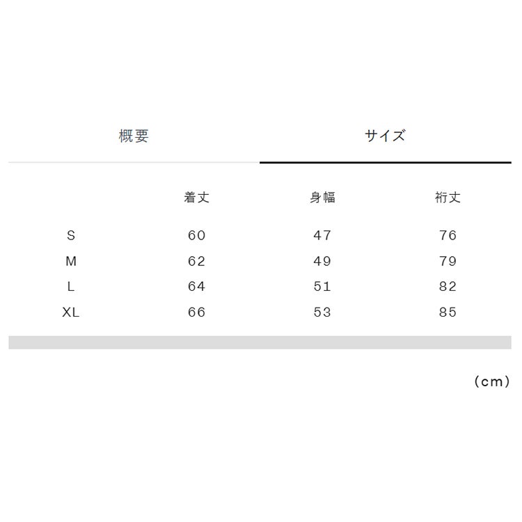 実寸サイズ(cm)S:着丈60、身幅47、裄丈76