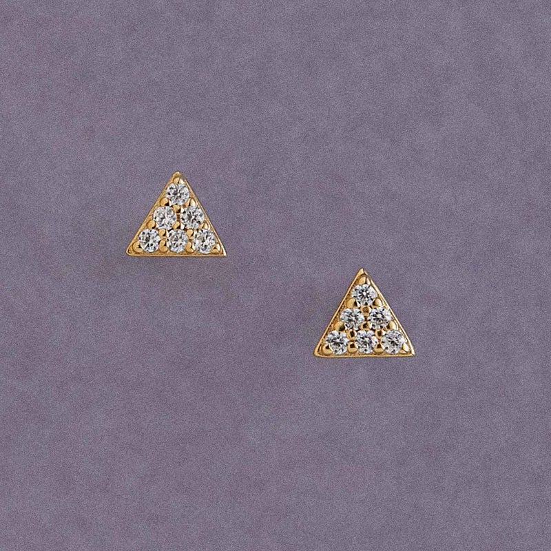 小さなトライアングルにストーンを丁寧に敷き詰めた、上品でミニマルなピアス。