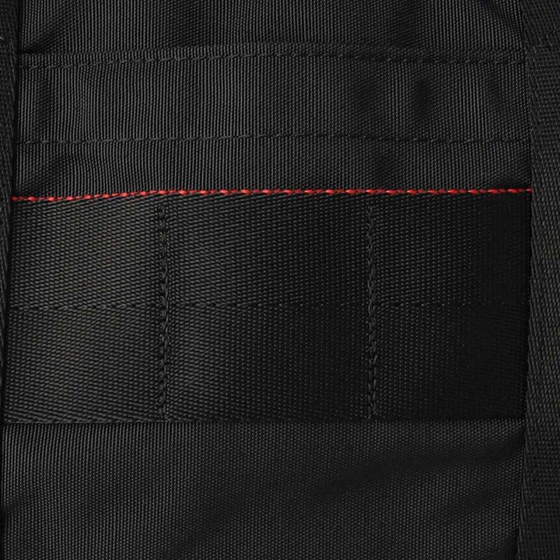 PCスリーブの近くに、ケーブルなどの収納に最適なメッシュポケットを配置するなど、関連する荷物がバラバラにならないように配慮。