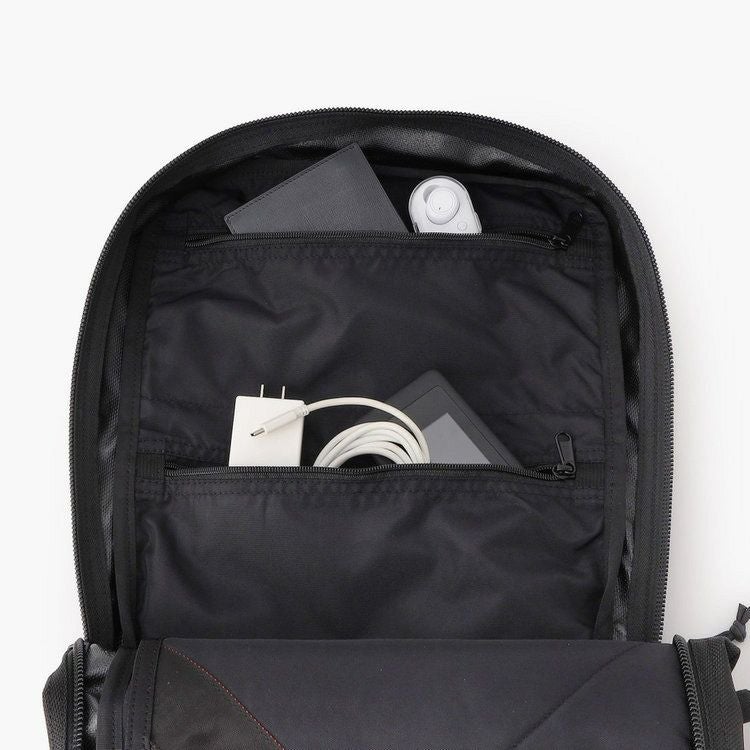 オールブラックで統一したミニマムな顔立ちと、PCや書類の収納に適したスクウェ型のフォルムがビジネススタイルにマッチ。