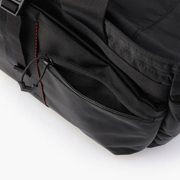 ・メイン収納部と完全セパレートした筒形ポケットをサイドに完備。