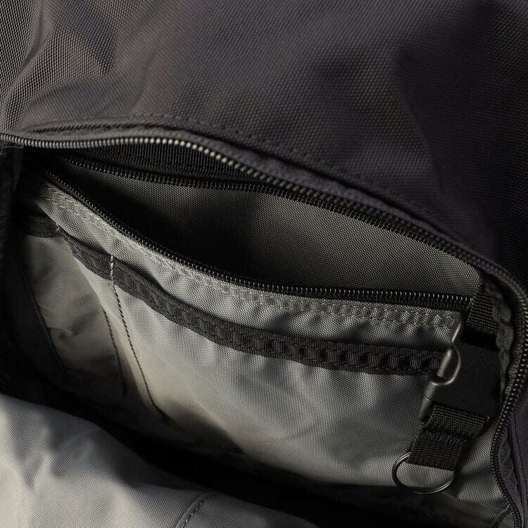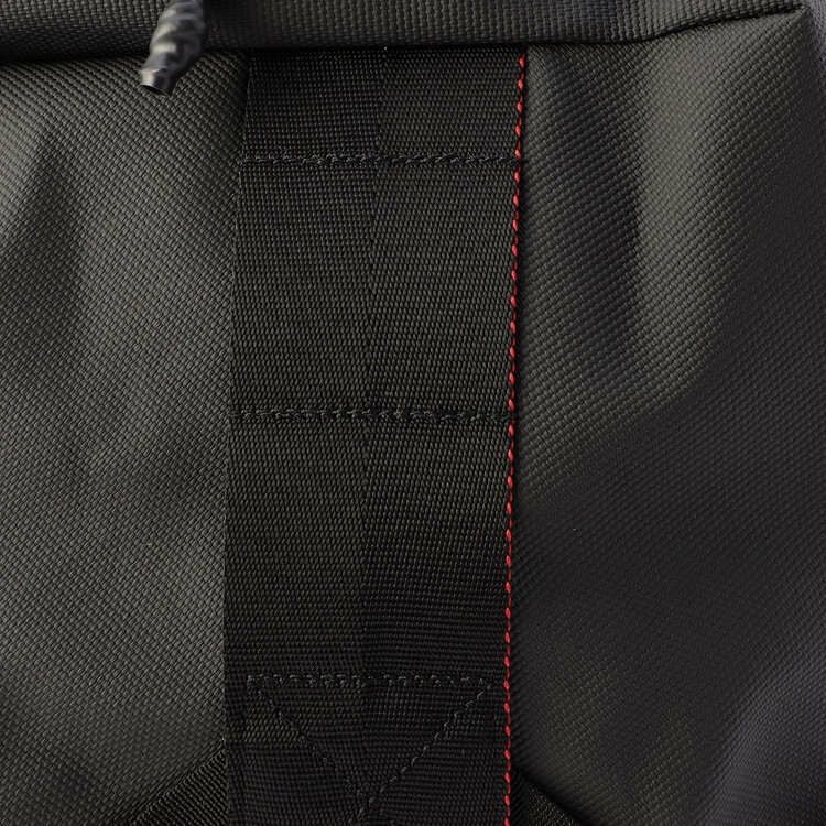 フロント面に使用されたP1220×1830デニールポリコーデュラは、ポリカーボネイト樹脂を用いたラミネート加工を施すことで、かばんの撥水性を高めている。