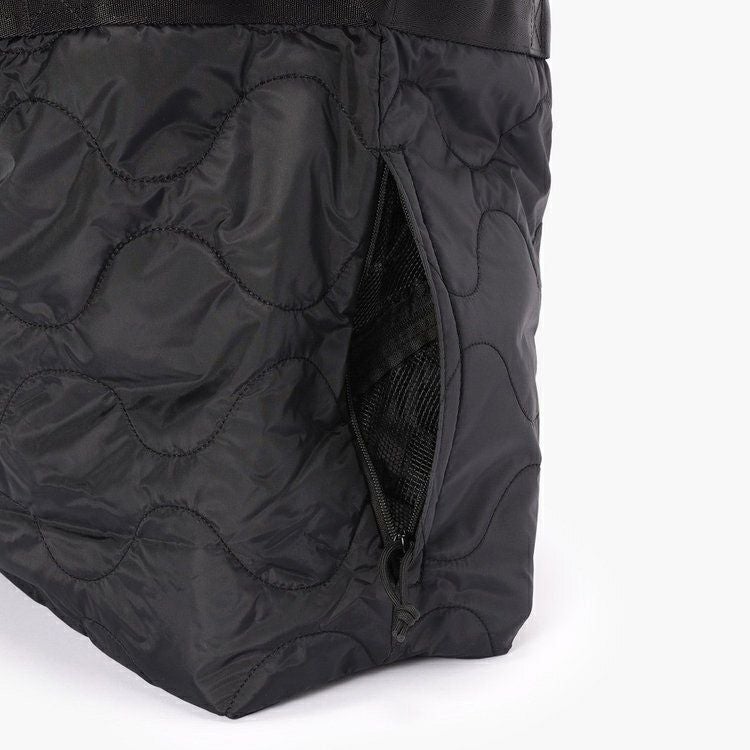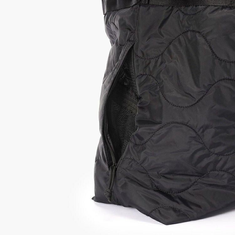 ・両脇に配したジップポケットは、内装側の生地にメッシュを用いることで、内側から中身が見えるだけでなく内装側にもファスナーを配し、荷物を出し入れできる構造に。