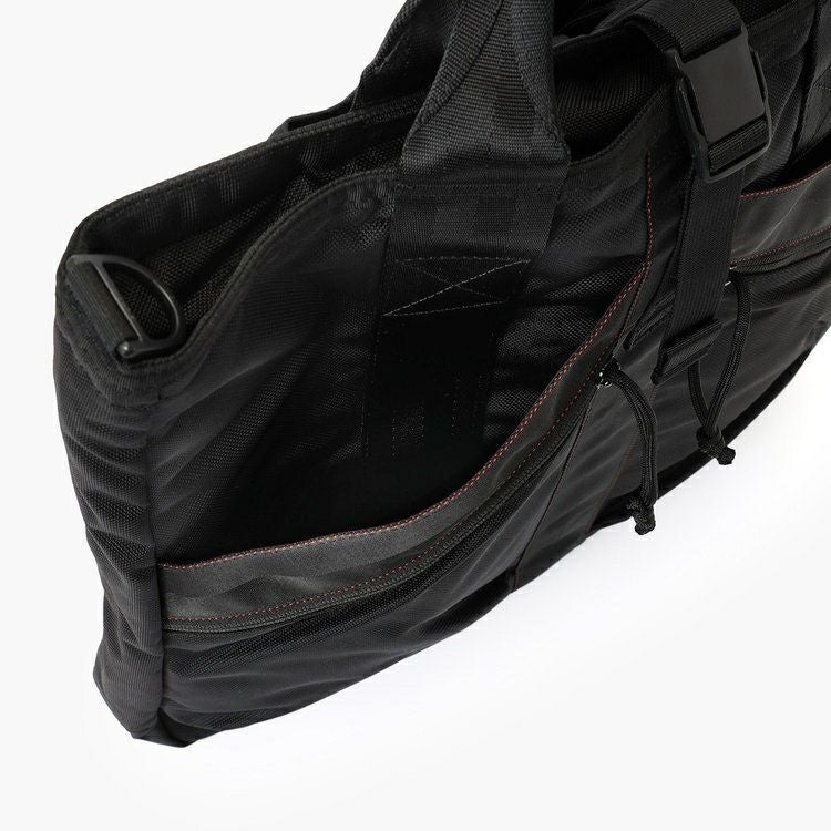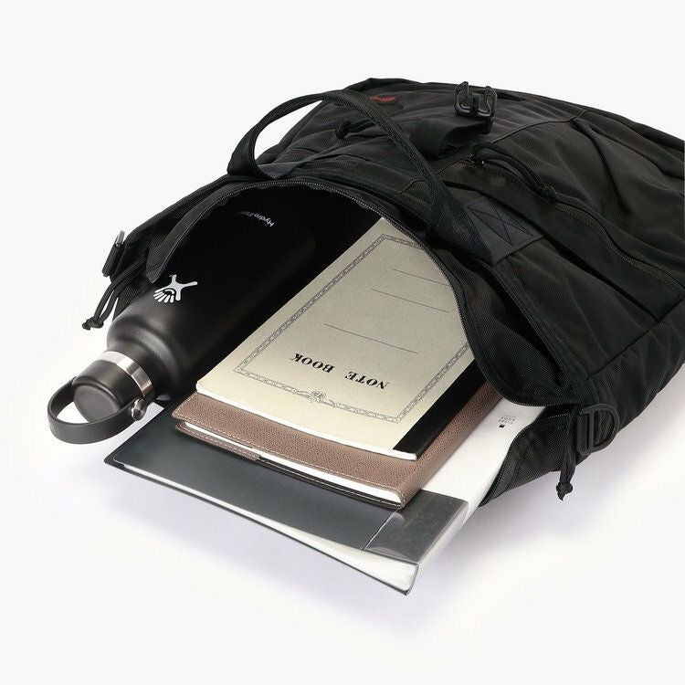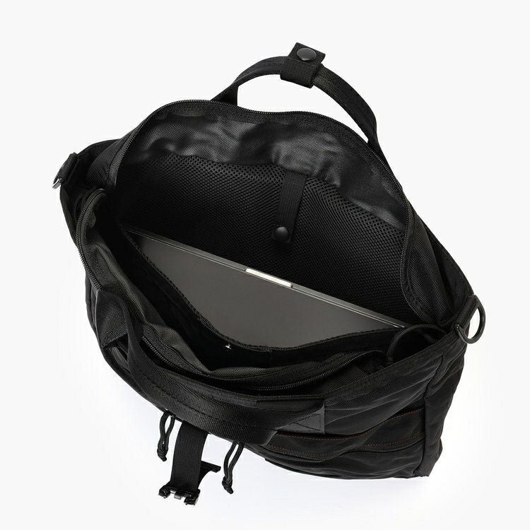 ・PCなど重量感のある荷物の収納を想定し、メイン素材にはコーデュラエアバリスティックを採用。
