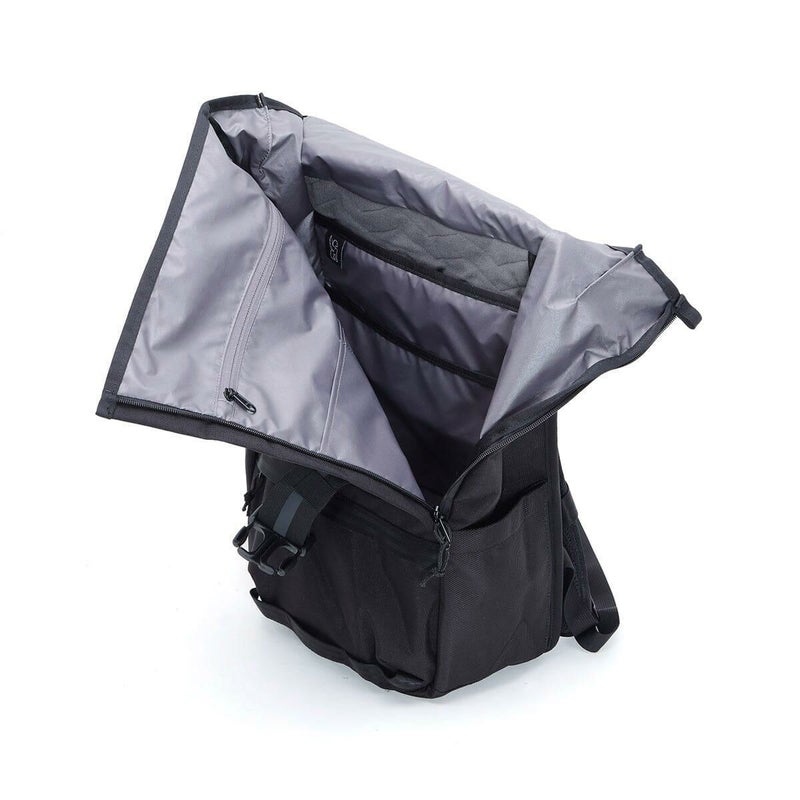 荷物の量やサイズに合わせて拡張できるフラップトップデザイン。