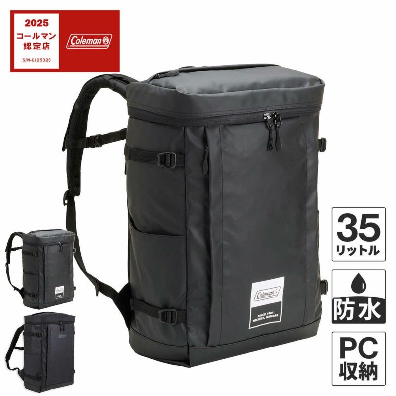 防水素材のスクエア型バックパック35L。