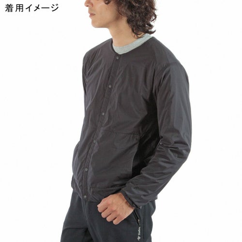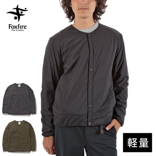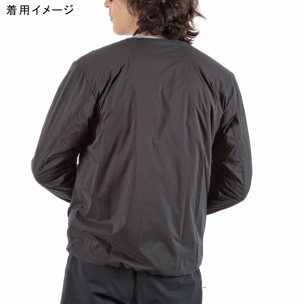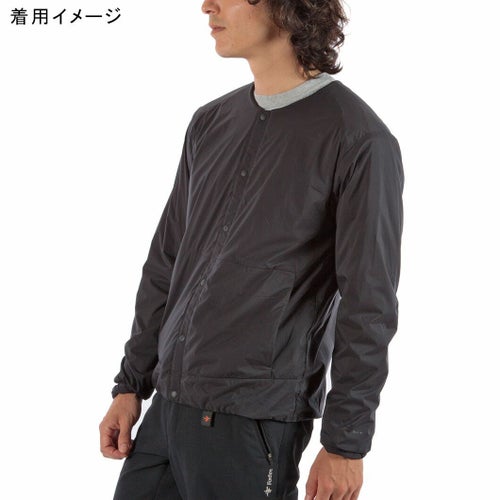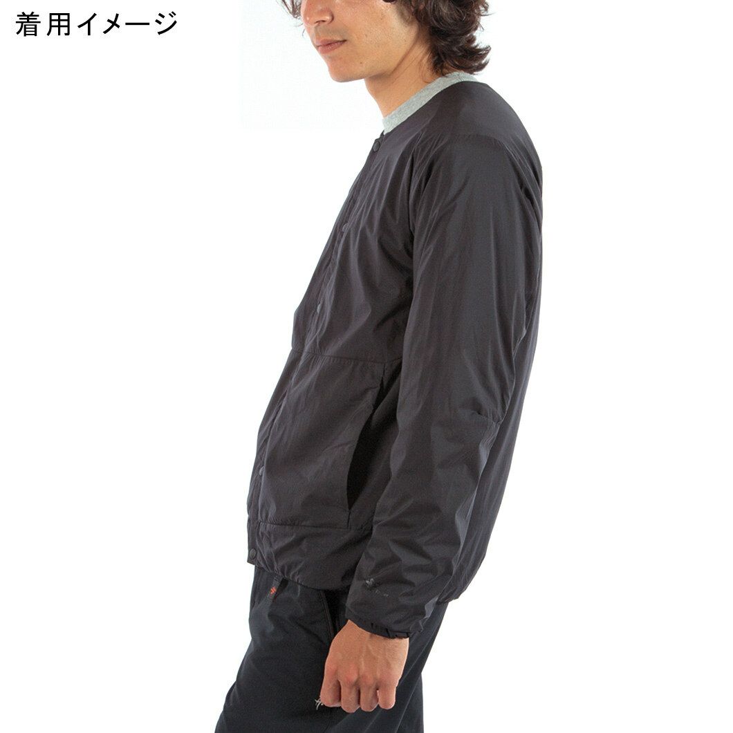通気性コーティングを施した薄手のストレッチタフタの表地に、中綿と裏地を一体化した高機能トリコット生地「Octa(R)cpcp(R)」をライニングした、ノーカラーデザインのウィンドシェルジャケット。