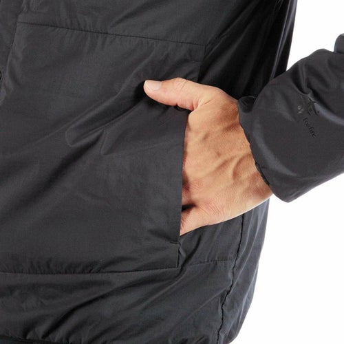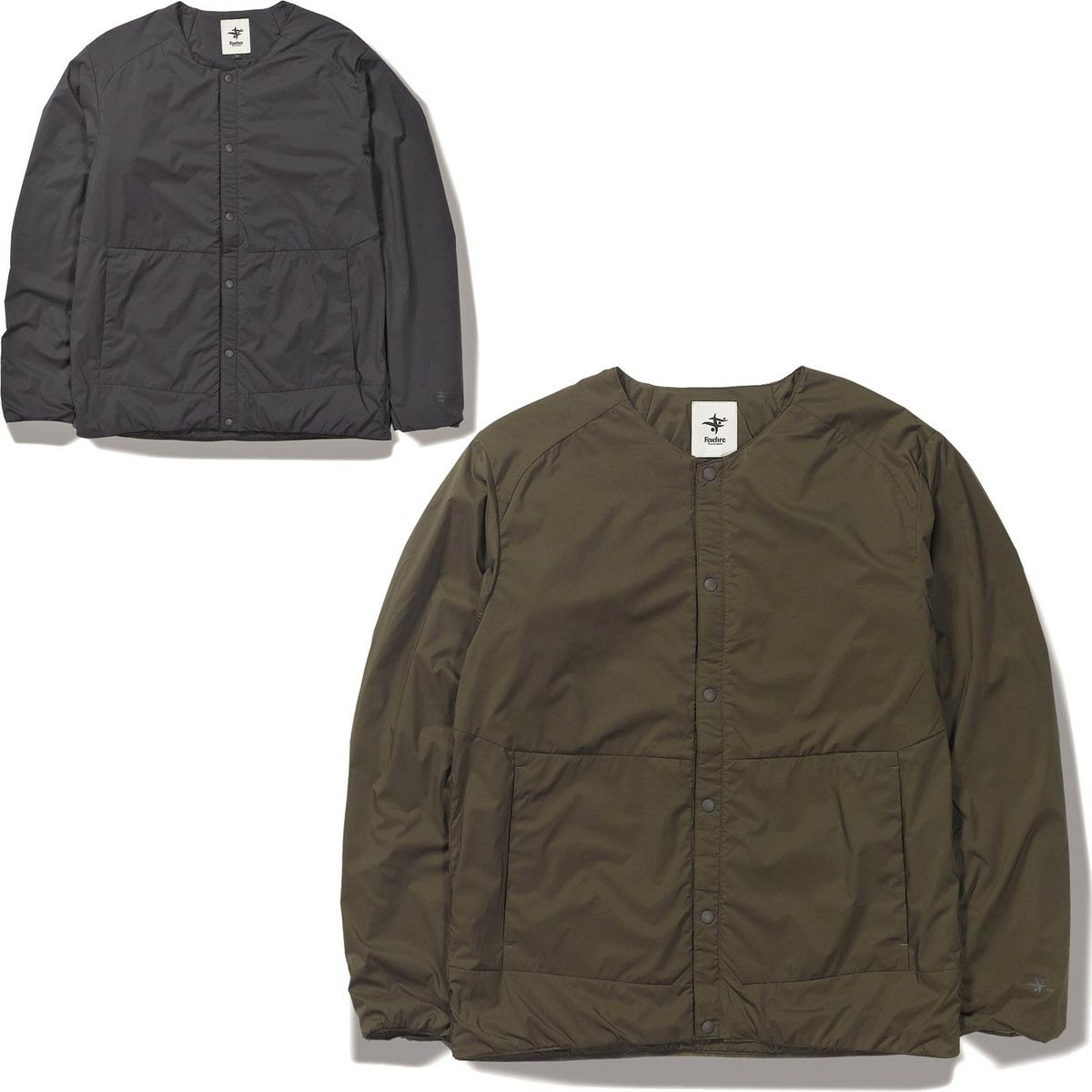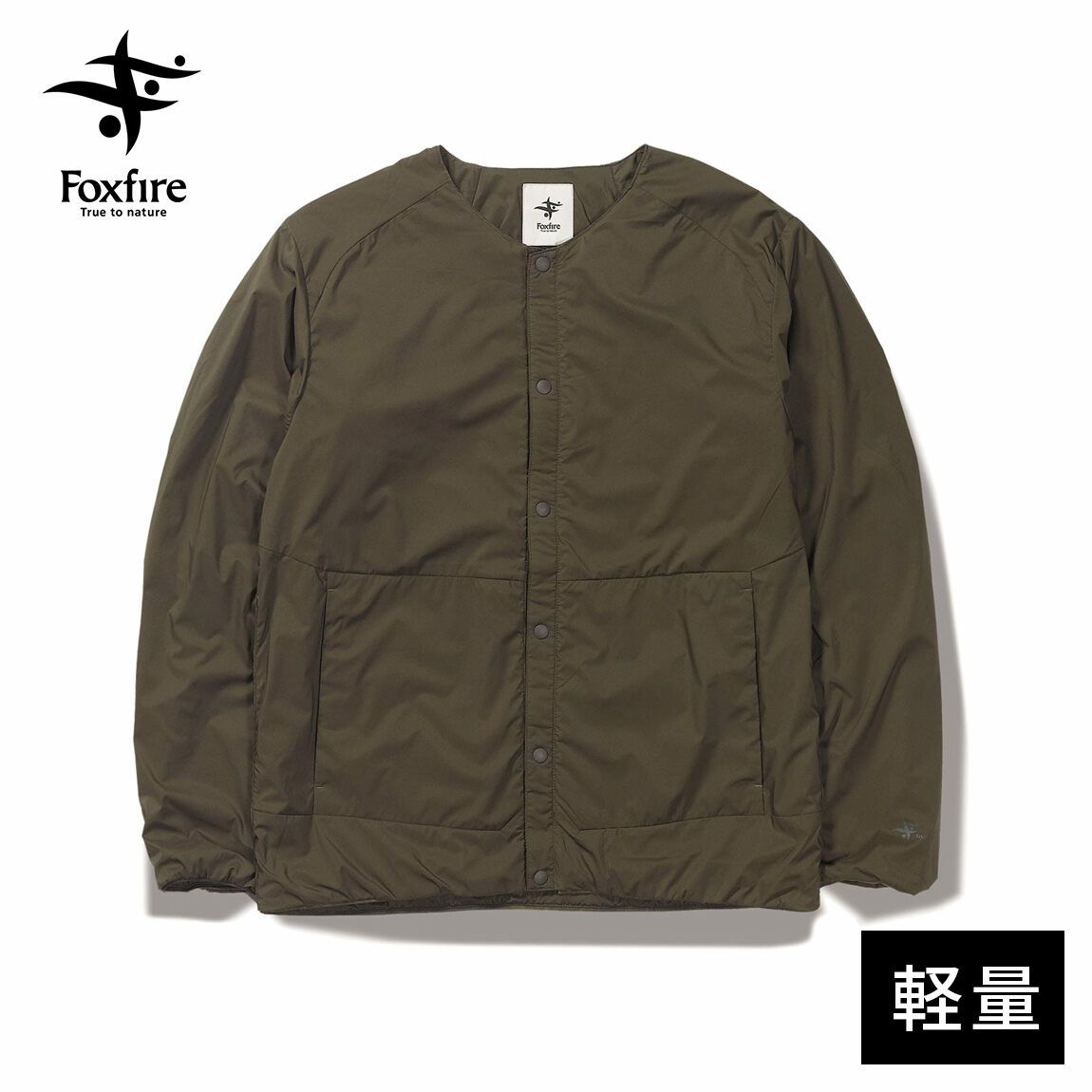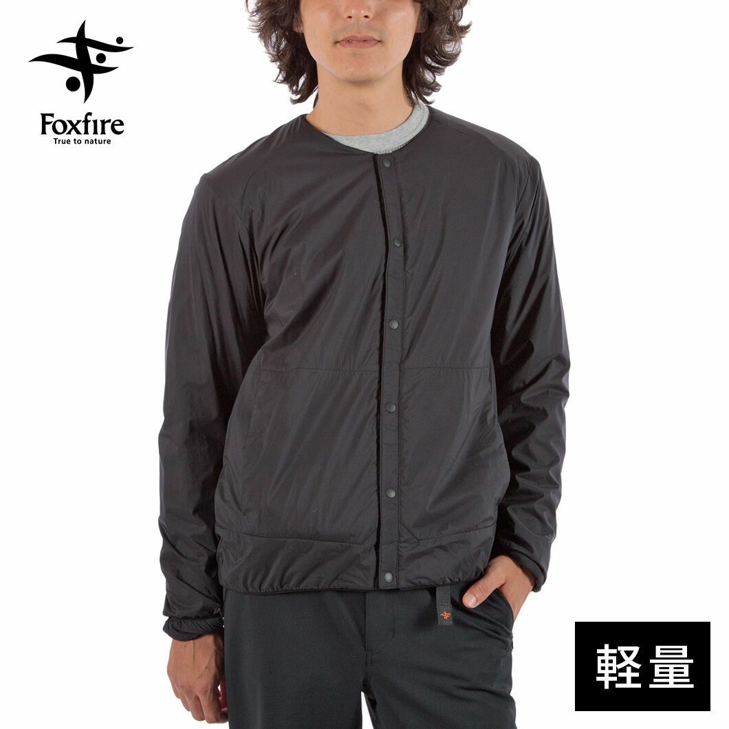 通気性コーティングを施した薄手のストレッチタフタの表地に、中綿と裏地を一体化した高機能トリコット生地「Octa(R)cpcp(R)」をライニングした、ノーカラーデザインのウィンドシェルジャケット。