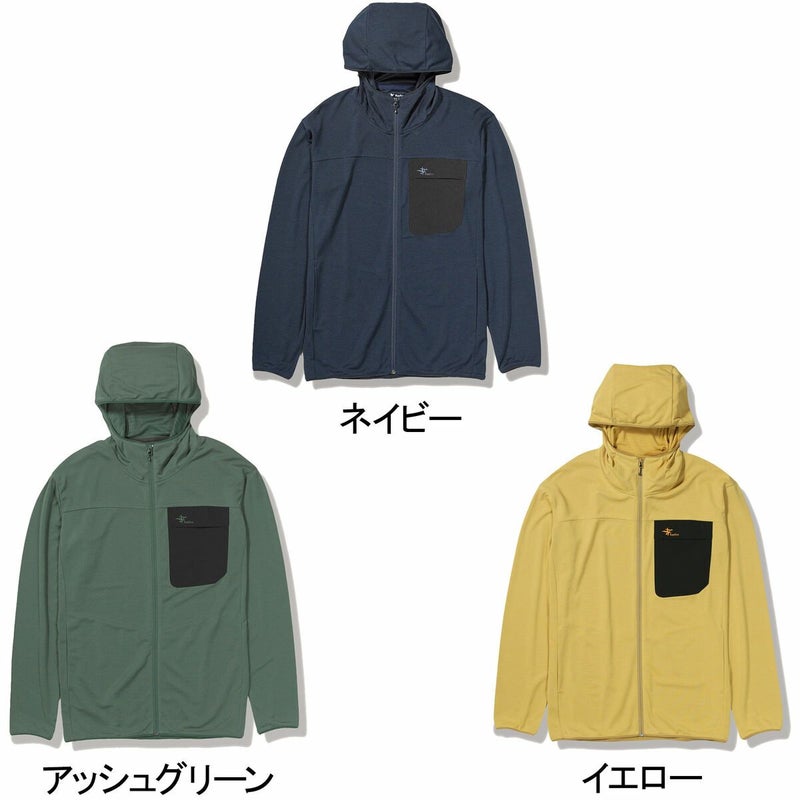 防虫、吸汗速乾、UVカット機能を持つトランスウェット・スコーロン素材に接触冷感機能もプラスし、盛夏でもよりサラッとした着用感を実現したフルジップフーディ。