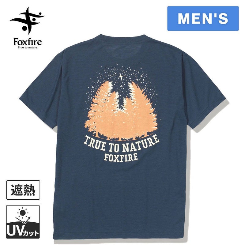 暗い森の上空を道しるべのように照らす星をモチーフにしたイラストをバックプリントしたTシャツ。