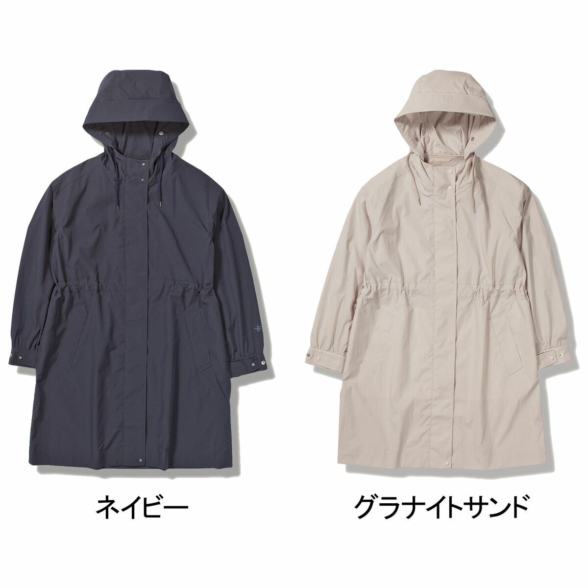 ・安心のミドル丈、立体的なフードで小顔効果。