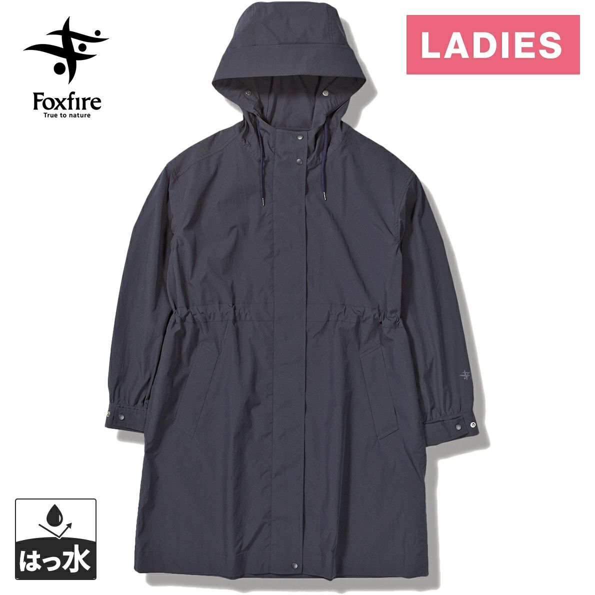 稲から作られる日本古来の雨具である蓑(ミノ)から発想を得た、「水を滑らせ、雨をよける」マイクロガーター構造を持つ撥水素材「ミノテック」を採用したミドル丈のコート。