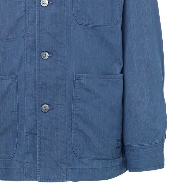 パッチポケットが印象的な、フレンチワークジャケットをベースにしたデザイン。