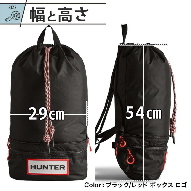 ハンター(HUNTER) トラベル リップストップ リサイクル ナイロン 2WAY バックパック travel ripstop backpack ブラック/レッドボックスロゴ UBB1519NRS RBO