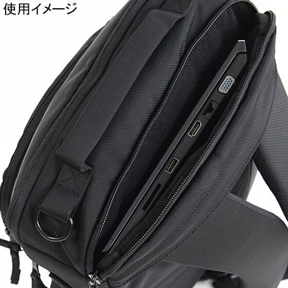 コンパクトな見た目ながらも収納力抜群で、メイン収納の他に、外からアクセス可能なマイクロフリースを使ったPCポケットやタブレットに最適なマイクロフリースを使ったファスナーポケット、オーガナイザーが使いやすいサブポケットなど、収納が多彩です。