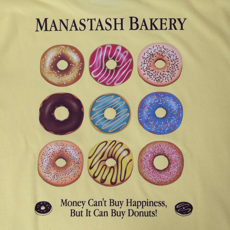 幸せはお金じゃ買えないけど、ドーナツなら買えるよ!というメッセージ入りのTシャツ。